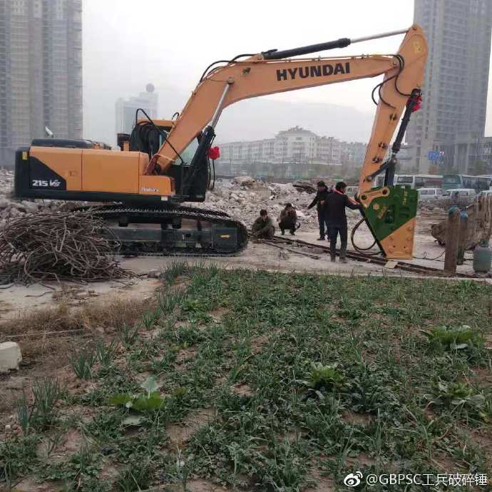液压破碎锤可与多种液压主机配套使用,如挖掘机、装载机、钢包拆包机、拆炉机等。其中,液压破碎锤与挖掘机配套作业最为普遍。