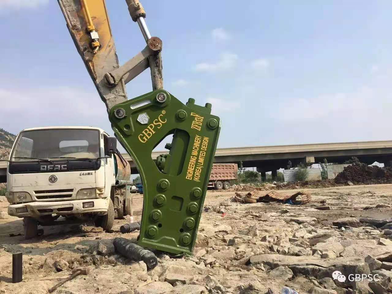如不理会继续施工可能会造成蓄能器和液压泵的损坏。在这里还需注意,破碎时不得将挖掘机油缸全部伸出,更不能以下落破碎锤的方式撞击物料,不然可能会损坏液压挖掘机及破碎锤。